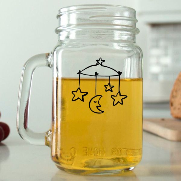 Mason Mug - Moon and Stars Baby Mobile - Personalized Mason Jar 16oz is available to buy in increments of 12