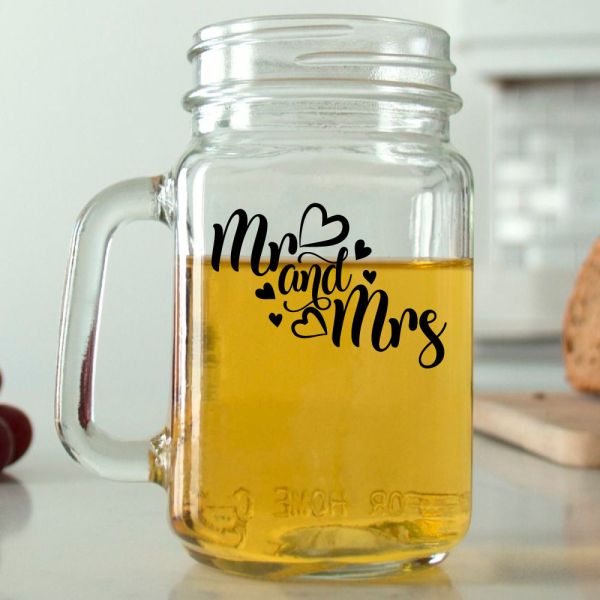 Mason Mug - Mr & Mrs Hearts - Personalized Mason Jar 16oz is available to buy in increments of 12