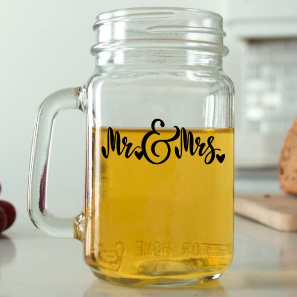 Mason Mug - Mr & Mrs - Personalized Mason Jar 16oz