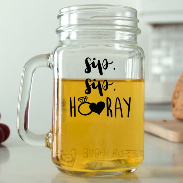 Mason Mug - Sip, Sip, Hooray - Personalized Mason Jar 16oz is available to buy in increments of 12