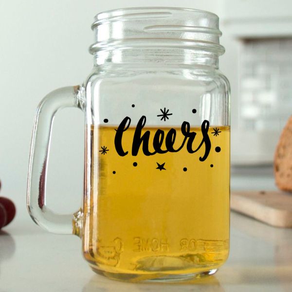 Mason Mug - Sparkly Cheers - Personalized Mason Jar 16oz