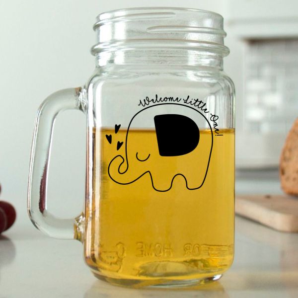 Mason Mug - Welcome Little One Elephant - Personalized Mason Jar 16oz is available to buy in increments of 12