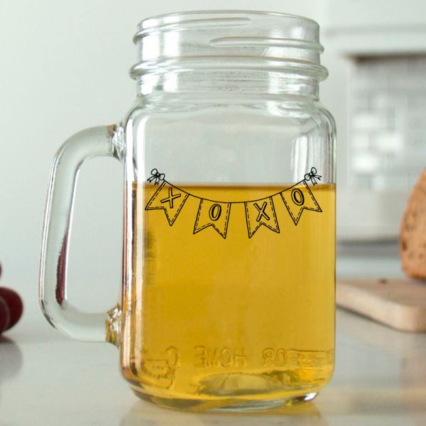 Mason Mug - XOXO Flag Banner - Personalized Mason Jar 16oz is available to buy in increments of 12
