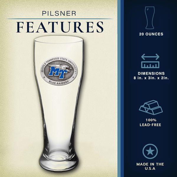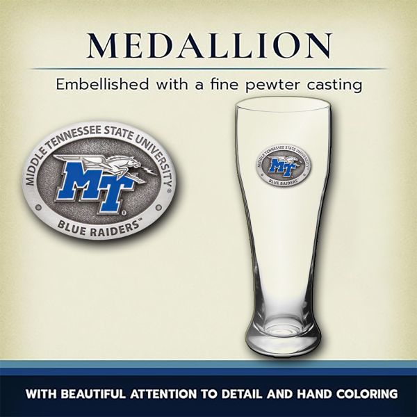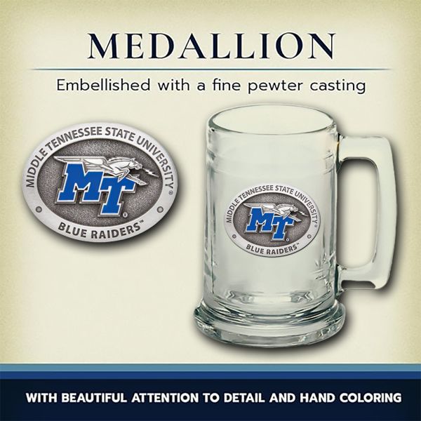 The Beer Chest Set comes with 2 - 20oz glass pilsners and 2 - 15oz glass steins. Each have a pewter medallion of your favorite NCAA team embellished to it.