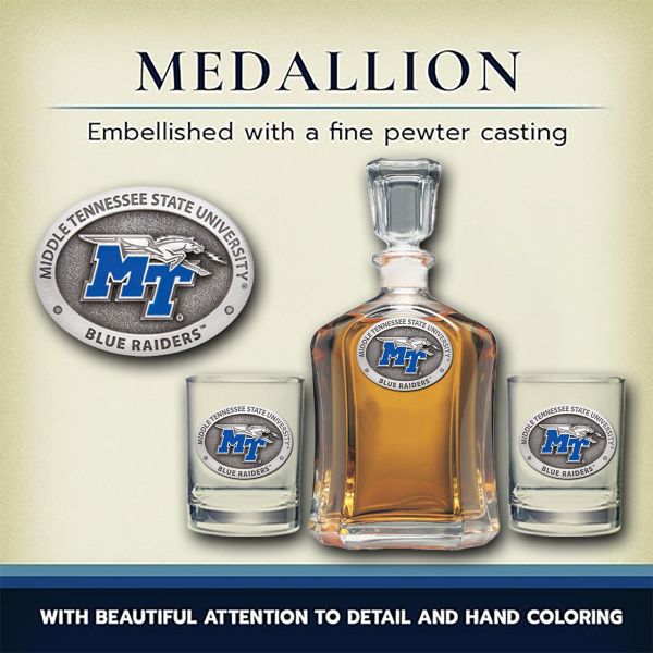 Middle Tennessee State Blue Raiders - Capitol Decanter with 2 Double Old Fashioned Glasses
