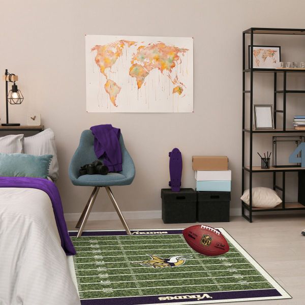 Show your team spirit with this officially licensed Minnesota Vikings area rug, styled to resemble a football field! Made with premium Stainmaster nylon fiber, this rug is fade resistant, durable and easy to care for. Endura-Loc high performance backing helps assure the rug always lies flat and serged edges give your rug the quality that your home and team deserve.