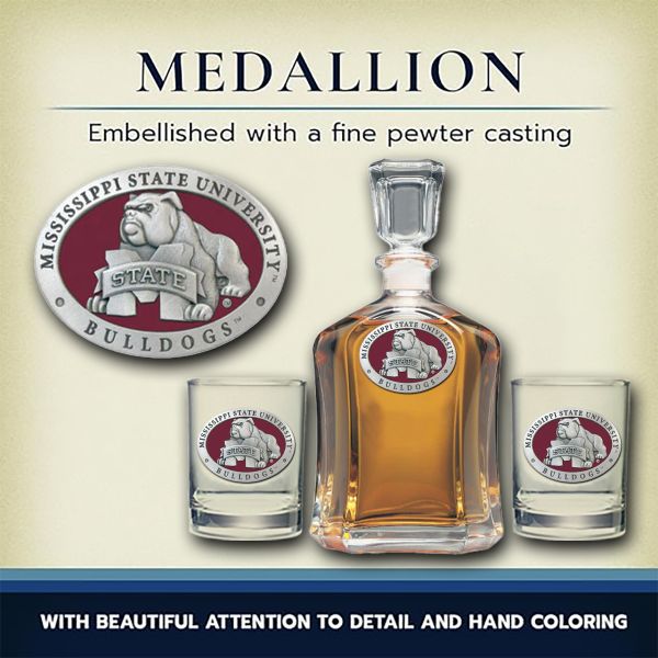 Mississippi State University Bulldogs - Capitol Decanter with 2 Double Old Fashioned Glasses in Chest
