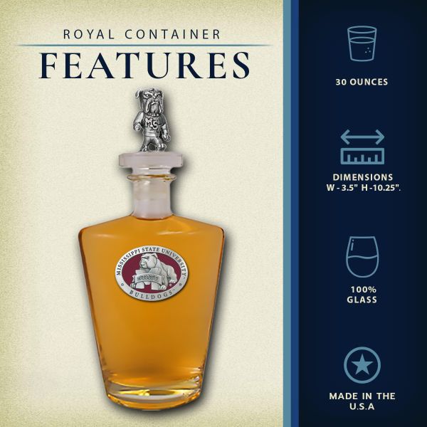 Mississippi State University Bulldogs Royal Decanter with 3D Topper