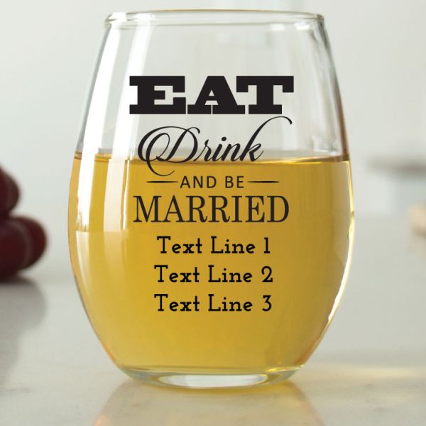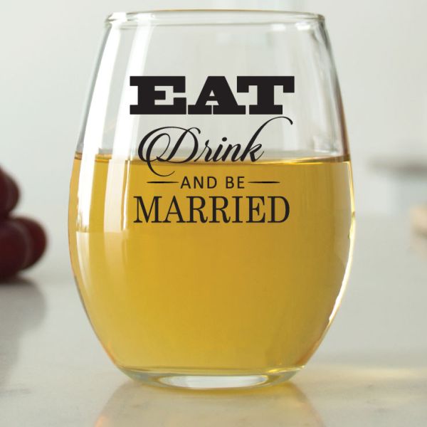 Modern Eat Drink and Be Married - 9 oz. ARC Perfection Stemless Wine Glasses