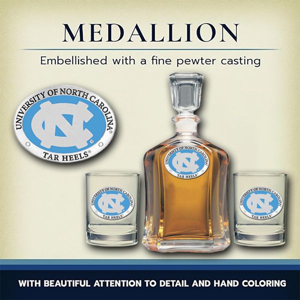 North Carolina Tarheels - Capitol Decanter with 2 Double Old Fashioned Glasses in Chest