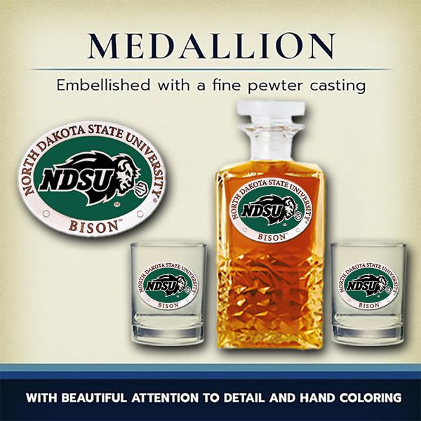 North Dakota State Bison - Heritage Decanter with 2 Old Fashioned Glasses