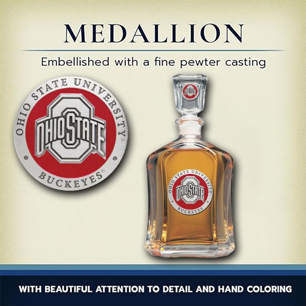 This 24-ounce glass decanter is embellished with a fine pewter casting of your favorite NCAA team. This may be paired with two Double Old-Fashioned glasses. A great addition to any home bar! Made in USA.