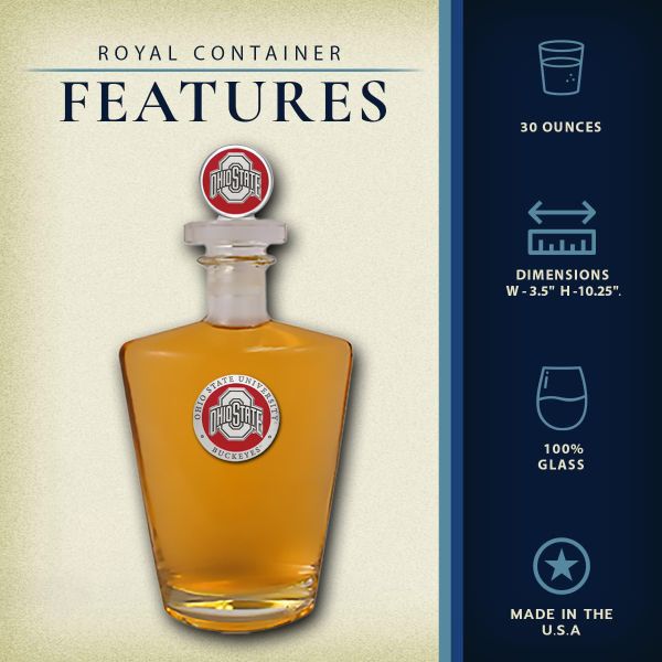 This 30-ounce glass container is embellished with a hand-sculpted, highly detailed Fine Pewter casting and features hand-poured enamel coloring with 3-dimensional stopper, making our Royal Container a great addition to any fan's collection.