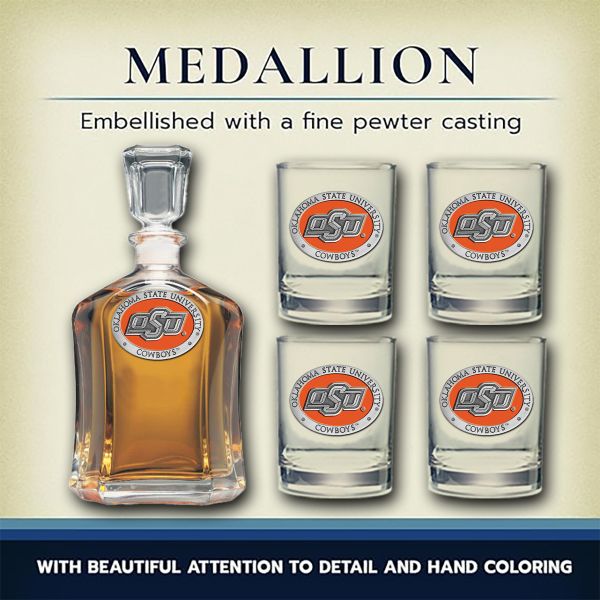 Oklahoma State University Cowboys - Capitol Decanter with 4 Double Old Fashioned Glasses in Chest