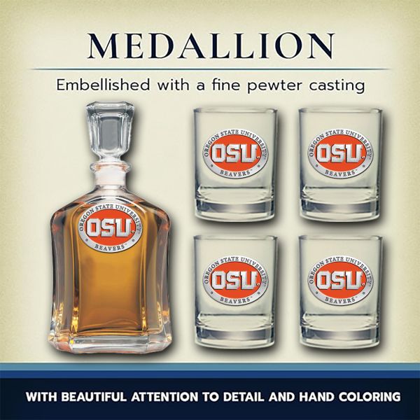 Oregon State University Beavers - Capitol Decanter with 4 Double Old Fashioned Glasses in Chest
