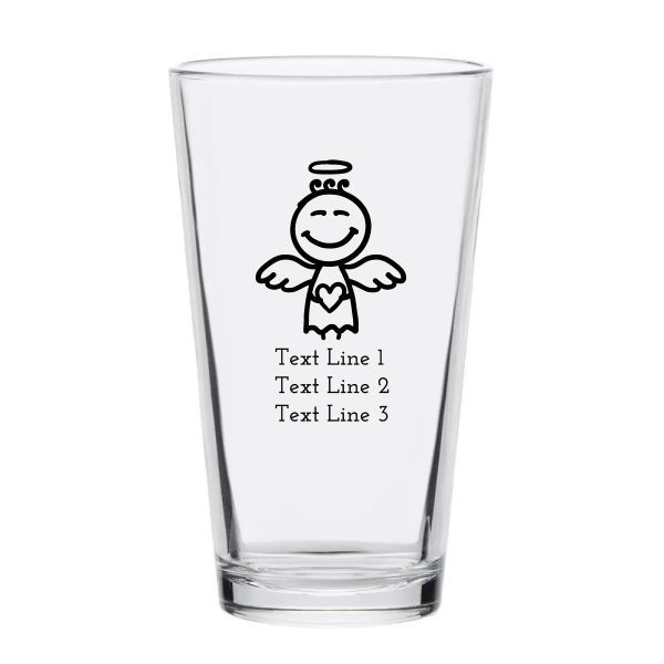 Personalized 16 oz Custom Pint Glasses - Angel Holding Heart - Customized Pint Glasses is available to buy in increments of 12