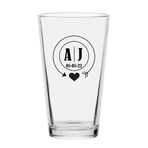 Personalized 16 oz Custom Pint Glasses - Circle Heart Monogram - Customized Pint Glasses