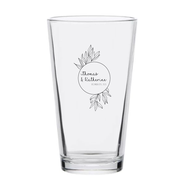 Personalized 16 oz Custom Pint Glasses - Circle with Leaves - Customized Pint Glasses