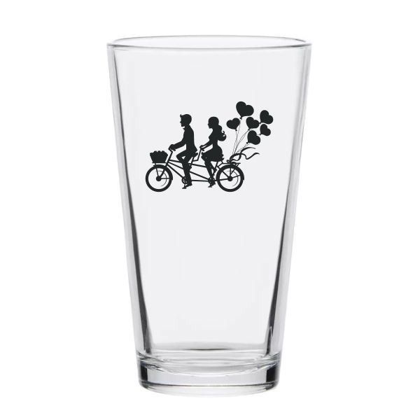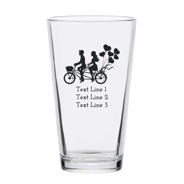 Personalized 16 oz Custom Pint Glasses - Couple Riding Bicycle - Customized Pint Glasses is available to buy in increments of 12