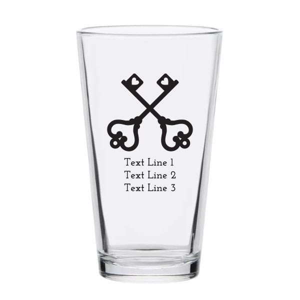 Personalized 16 oz Custom Pint Glasses - Crossed Keys - Customized Pint Glasses