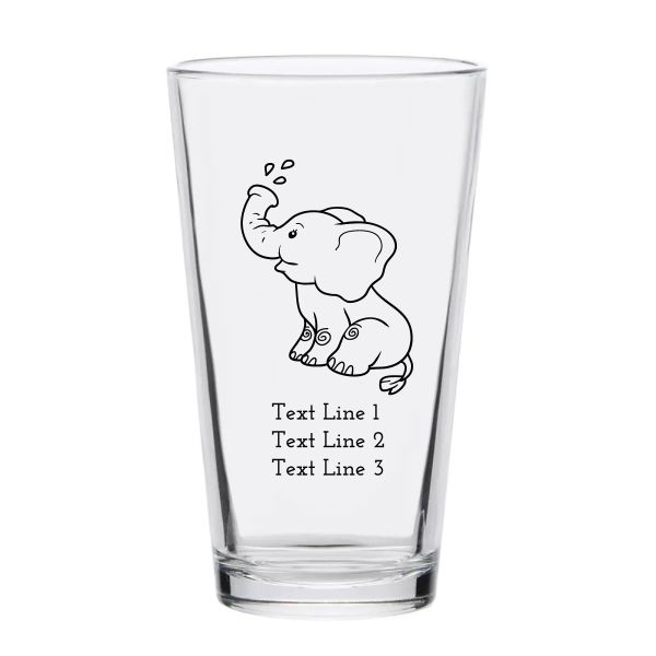 Personalized 16 oz Custom Pint Glasses - Cute Baby Elephant - Customized Pint Glasses is available to buy in increments of 12