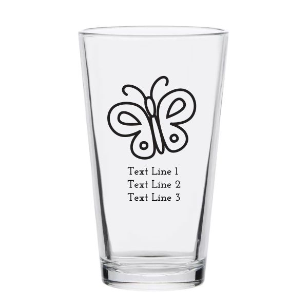 Personalized 16 oz Custom Pint Glasses - Cute Butterfly - Customized Pint Glasses is available to buy in increments of 12