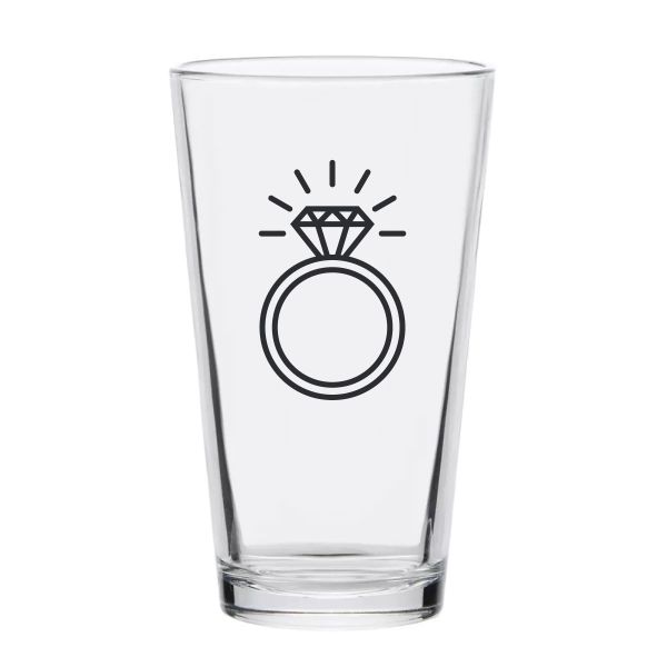 Personalized 16 oz Custom Pint Glasses - Diamond Engagement Ring - Customized Pint Glasses is available to buy in increments of 12
