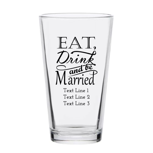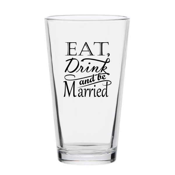 Personalized 16 oz Custom Pint Glasses - Eat Drink and be Married - Customized Pint Glasses is available to buy in increments of 12