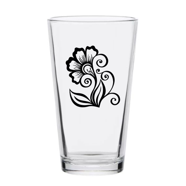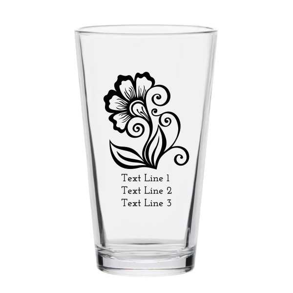 Personalized 16 oz Custom Pint Glasses - Floral Flourish - Customized Pint Glasses is available to buy in increments of 12