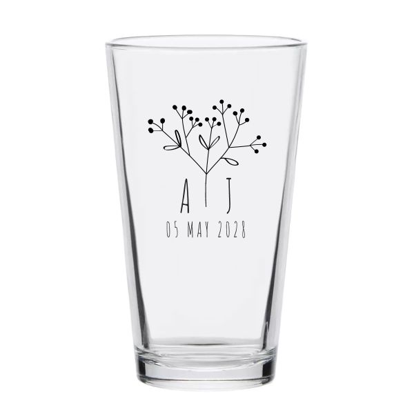 Personalized 16 oz Custom Pint Glasses - Flower Branch Name - Customized Pint Glasses is available to buy in increments of 12