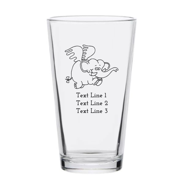 Personalized 16 oz Custom Pint Glasses - Flying Elephant - Customized Pint Glasses is available to buy in increments of 12