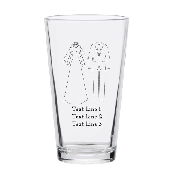Personalized 16 oz Custom Pint Glasses - Gown and Tuxedo - Customized Pint Glasses is available to buy in increments of 12
