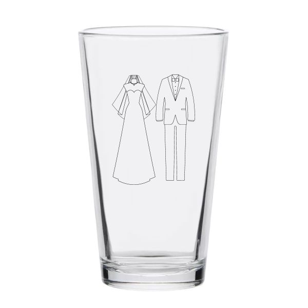 Personalized 16 oz Custom Pint Glasses - Gown and Tuxedo - Customized Pint Glasses