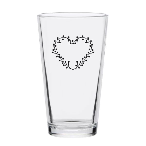 Personalized 16 oz Custom Pint Glasses - Heart Flower Wreath with Initials - Customized Pint Glasses