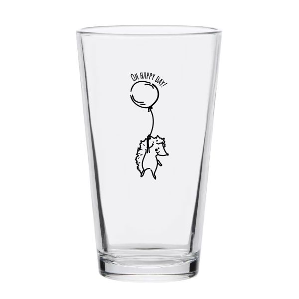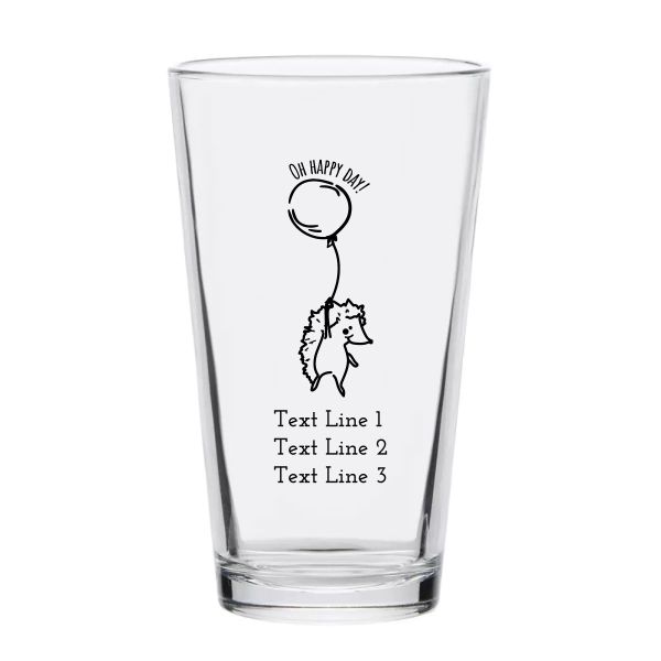 Personalized 16 oz Custom Pint Glasses - Hello Baby Hedgehog with Balloon - Customized Pint Glasses