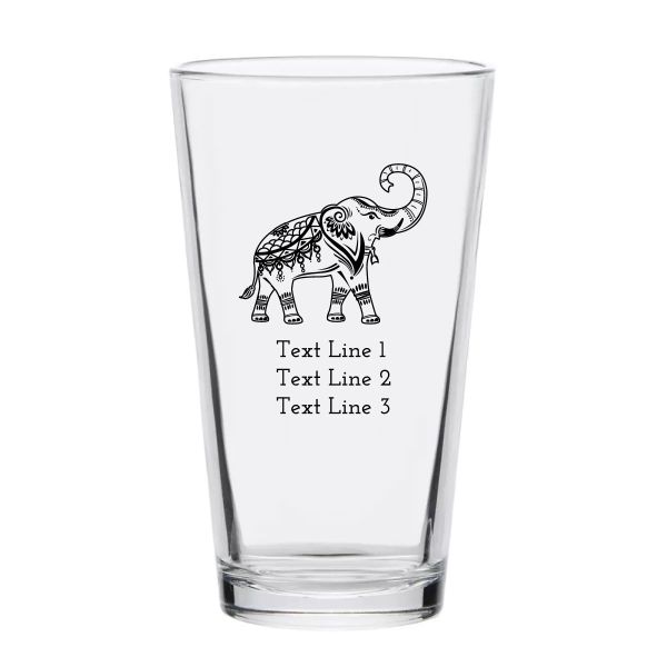 Personalized 16 oz Custom Pint Glasses - Indian Culture Elephant - Customized Pint Glasses is available to buy in increments of 12