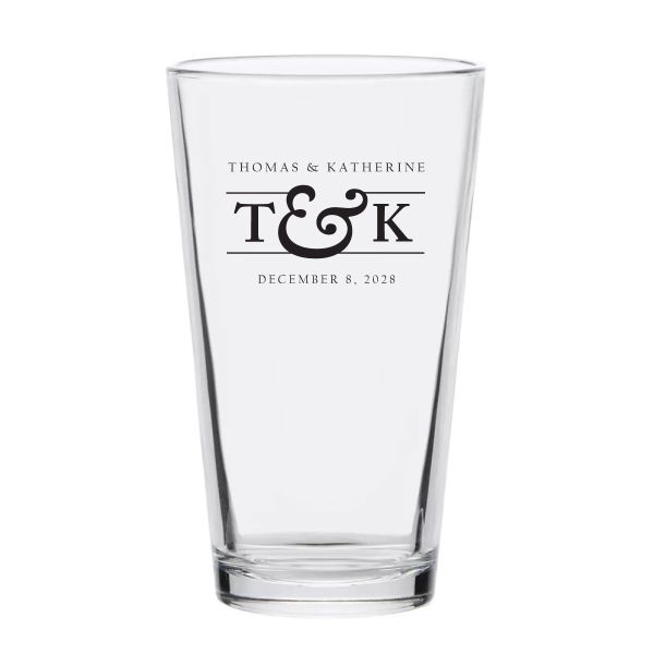 Personalized 16 oz Custom Pint Glasses - Initials Monogram Name and Date - Customized Pint Glasses