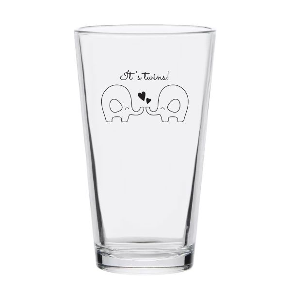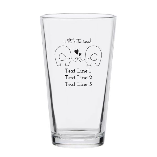 Personalized 16 oz Custom Pint Glasses - It's Twins Cursive Elephants - Customized Pint Glasses is available to buy in increments of 12