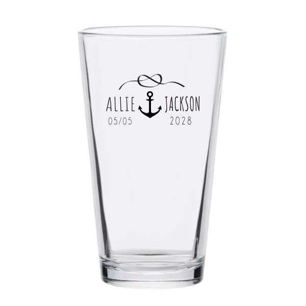 Personalized 16 oz Custom Pint Glasses - Knot and Anchor - Customized Pint Glasses