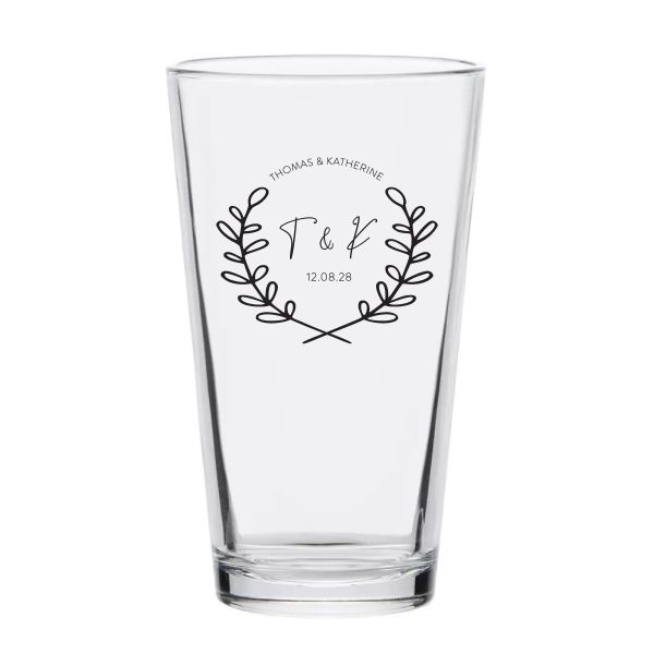 Personalized 16 oz Custom Pint Glasses - Laurel Leaf Signature Initial - Customized Pint Glasses is available to buy in increments of 12