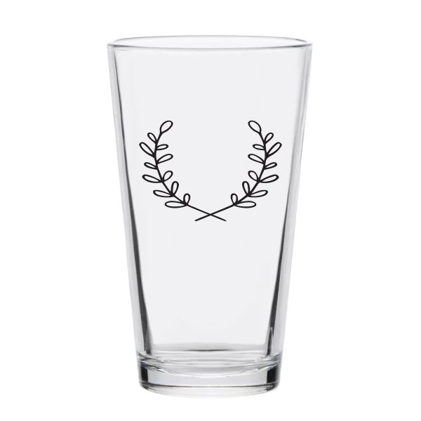 Personalized 16 oz Custom Pint Glasses - Laurel Leaf Signature Initial - Customized Pint Glasses