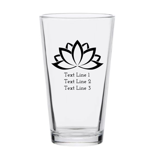 Personalized 16 oz Custom Pint Glasses - Lotus Flower Outline - Customized Pint Glasses