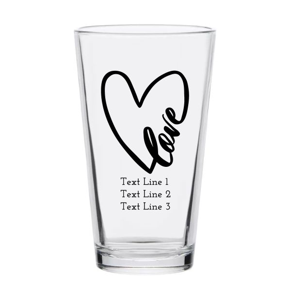Personalized 16 oz Custom Pint Glasses - Love Heart - Customized Pint Glasses is available to buy in increments of 12