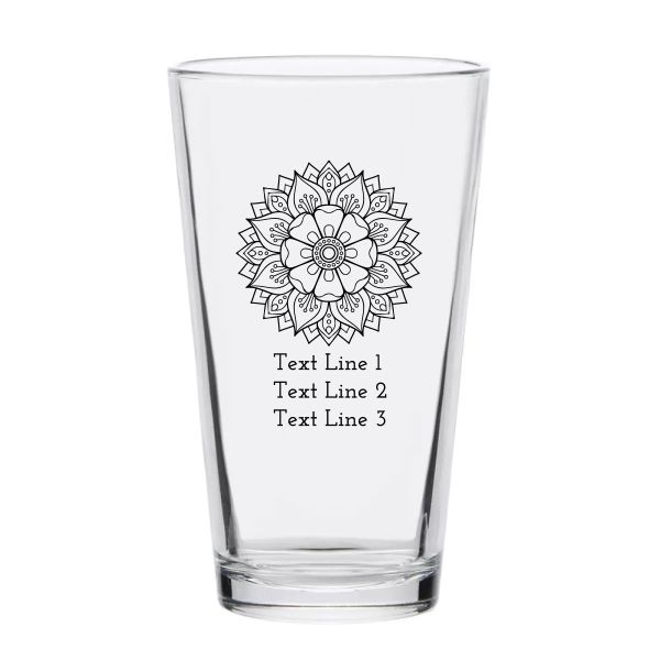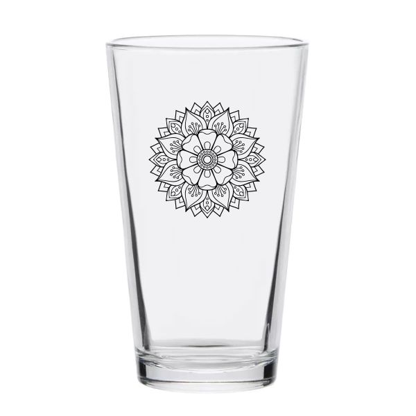 Personalized 16 oz Custom Pint Glasses - Mandala Flower - Customized Pint Glasses is available to buy in increments of 12