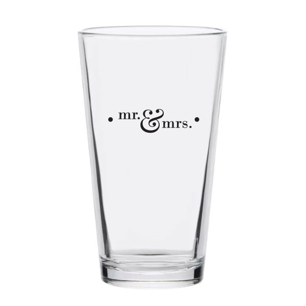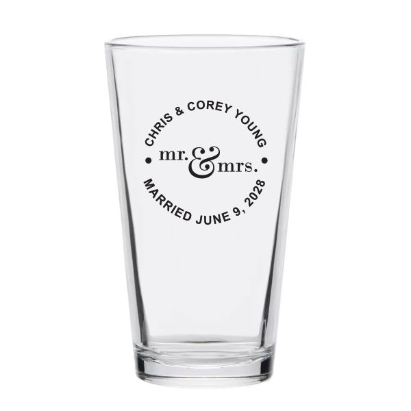 Personalized 16 oz Custom Pint Glasses - Mr. & Mrs. Circle Stamp - Customized Pint Glasses