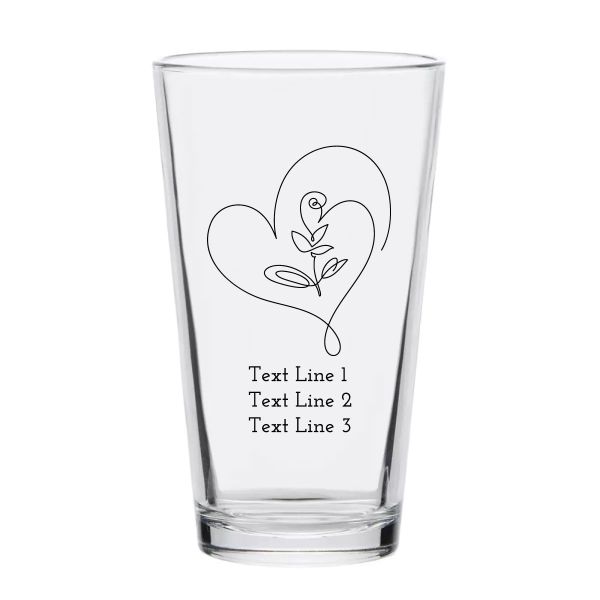Personalized 16 oz Custom Pint Glasses - Rose Heart Line Art - Customized Pint Glasses is available to buy in increments of 12