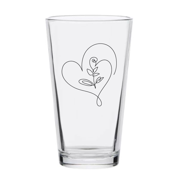 Personalized 16 oz Custom Pint Glasses - Rose Heart Line Art - Customized Pint Glasses