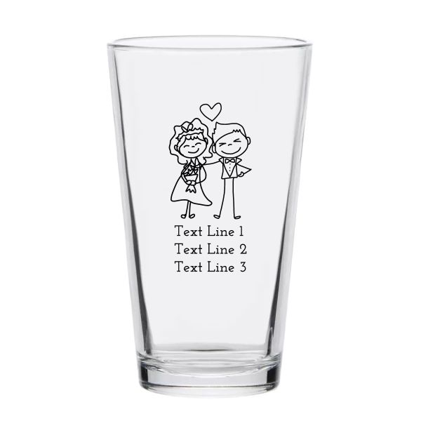 Personalized 16 oz Custom Pint Glasses - Stick Figure Bride and Groom - Customized Pint Glasses is available to buy in increments of 12
