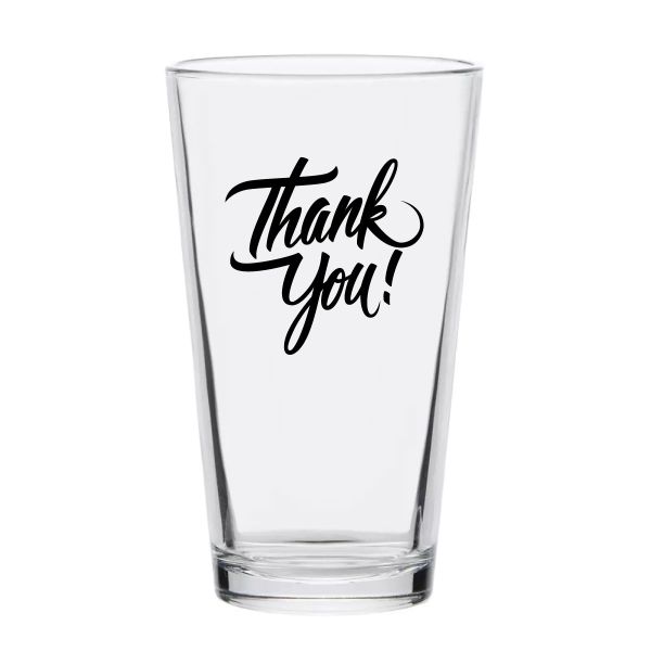 Personalized 16 oz Custom Pint Glasses - Thank You! - Customized Pint Glasses is available to buy in increments of 12
