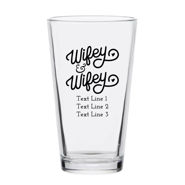Personalized 16 oz Custom Pint Glasses - Wifey & Wifey - Customized Pint Glasses is available to buy in increments of 12